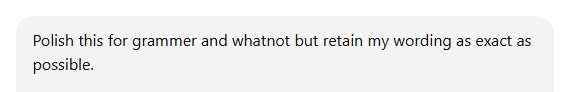 Before I get into it, I want to say… people give AI a bad wrap. But I love it. Obviously, I’m constantly writing. People genuinely ask how I pump out so many thoughts here or on X so consistently. My “secret” is that I often don’t actually write anything at all… no, that doesn’t mean that AI is writing for me. What I mean is that I often use voice-to-text dictation. I’ll be riding my bike or taking a long walk and my head will fill up with thoughts and reflections. I’ll pull up Apple Notes, Voice Recorder, or my Gmail and just start talking out a reflection or essay. Then I’ll take that converted text — which will be full of grammatical issues, long pauses, random word corrections mid-speak — and paste it into an AI. Then I'll give the AI explicit instructions: polish this for grammar but retain my wording exactly. Like this….