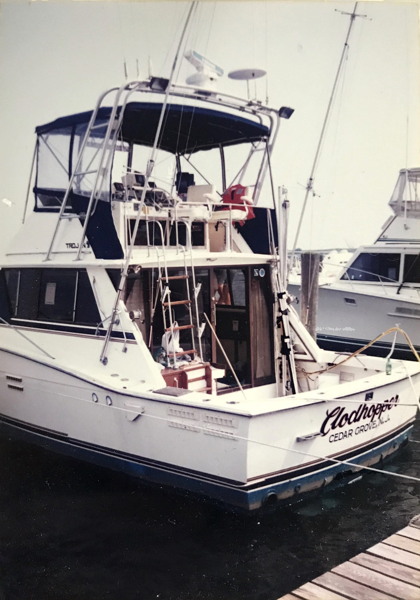 Your uncle and I were partners on it. I bought that boat in 1988… so you were 1. We just started having kids. It was a 36’ Trojan designed for sportfishing. We had it for about 8 years. We sold it in about 1995. I wasn’t using it much anymore. We had you kids.. and it cost a lot of money.
