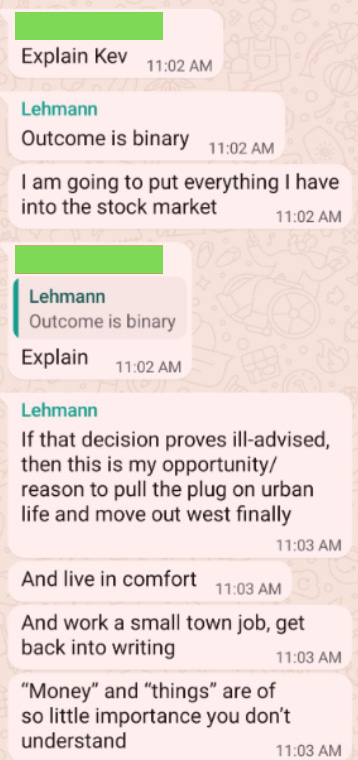 The next day, I sent my girlfriend now wife a note. I was in good spirits and looking forward to the future, despite being at the literal deepest depth of the financial crisis.