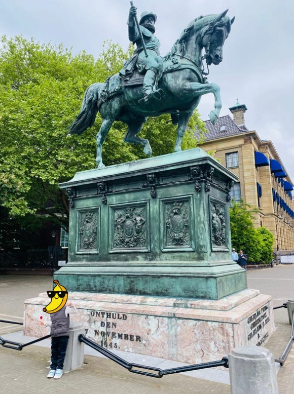 The cool thing about Art Zuid is its accessibility — you don’t need a ticket, and you don’t need to know anything about art. You just walk through the neighborhood, filled with stately brick homes and historic hotels (like the Hilton, where John Lennon and Yoko Ono staged their famous Bed-In for Peace protest), and encounter these giant abstract forms, strange surreal figures, or playful pieces like what our kids call “straws for giants” — or an armless bronze man staring into the distance. The whole thing feels like a quiet, clever disruption of everyday life.